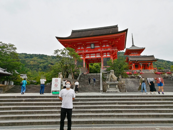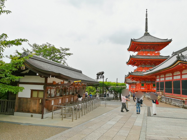 いつもなら満員電車のような産寧坂(さんねんざか)を、ストレスフリーでのんびり歩き、清水寺の入り口に到着しました。仁王門の全体像がこんなにわかりやすいのも初めてです。