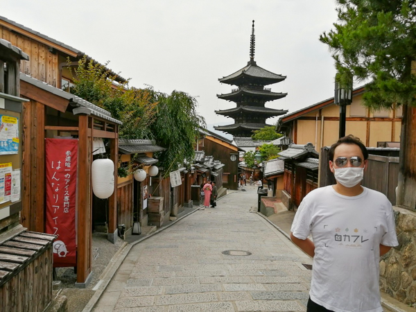 八坂神社と清水寺の間にある「八坂の塔」で写真をパシャリ。普段は写真を撮ろうと人で大混雑しているのですが、こんなに人通りが少ない!