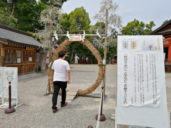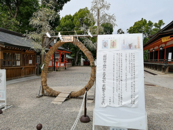 八坂神社では、「世に疫病が流行すれば、蘇民将来の子孫といい、茅の輪をつけておれば免れさせる」という言い伝えがあるそうです。