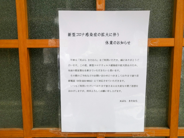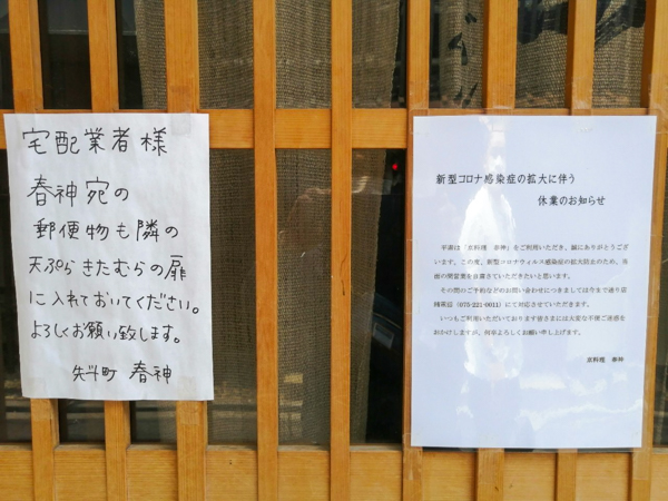 祇園のお店は緊急事態宣言の前から自粛をしている