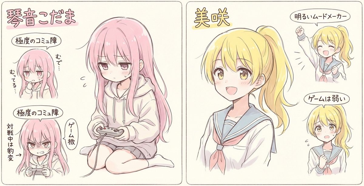 (2) 個別画像とキャラクター設定画像と個別シナリオで1K画像を作成。