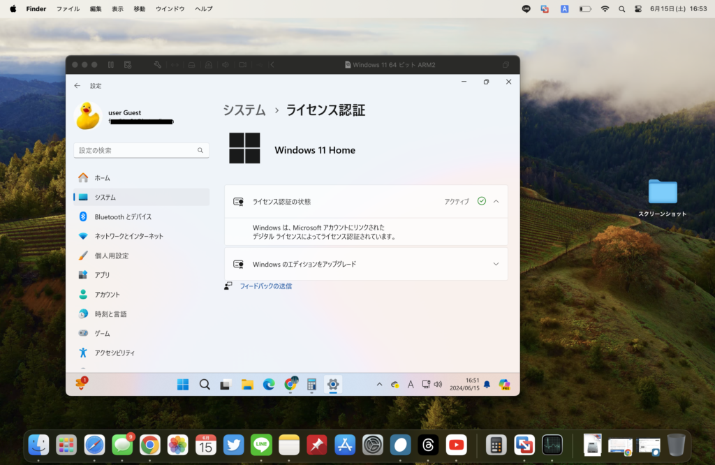 インストール完了後、持っていたWindows11 Home Editionのライセンスキーを入力して認証完了。