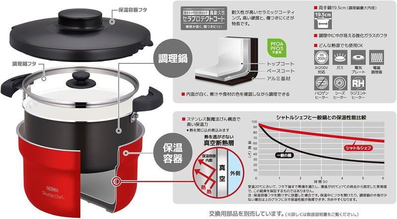 1989年に発売開始して以降、ロングセラー商品であるサーモスの「真空保温調理器シャトルシェフ」シリーズ。調理鍋と保温容器がセットになった調理器具です。
