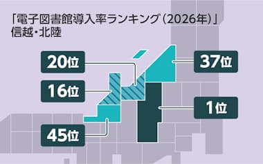 北信越5県の県内自治体別の電子図書館導入率は、石川県が40%で全国1位の長野県(100%)に続いた。現在は12.9%にとどまる新潟県が全市町村への導入を目指すなど、サービス拡大への取り組みも目立つ。福井県では県立図書館が電子図書館を導入し、利用者を増やすための体験会を県内各地で開いている。