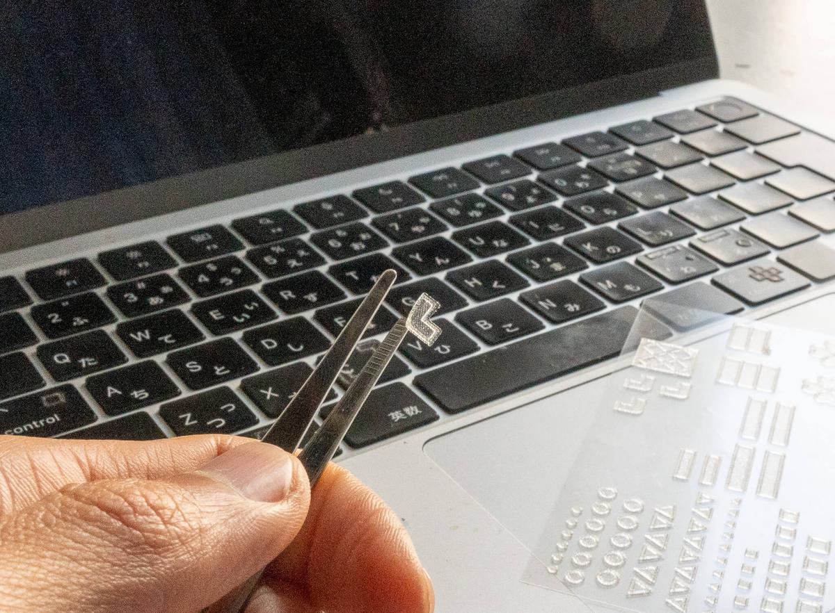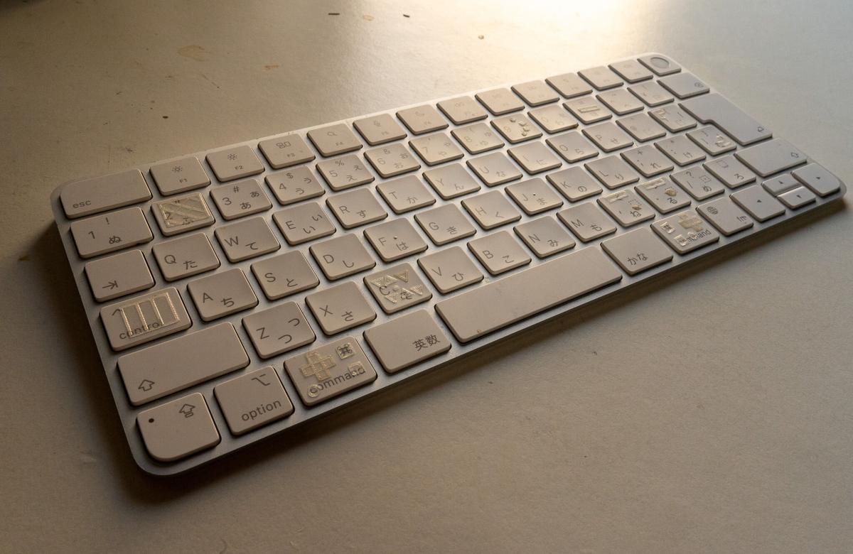 ちなみに筆者は、自宅のMagic KeyboardとMacbook本体のどちらでも同じような感覚でタイピングができるよう、両方のキーボードの同じ位置にシールを貼付しています。