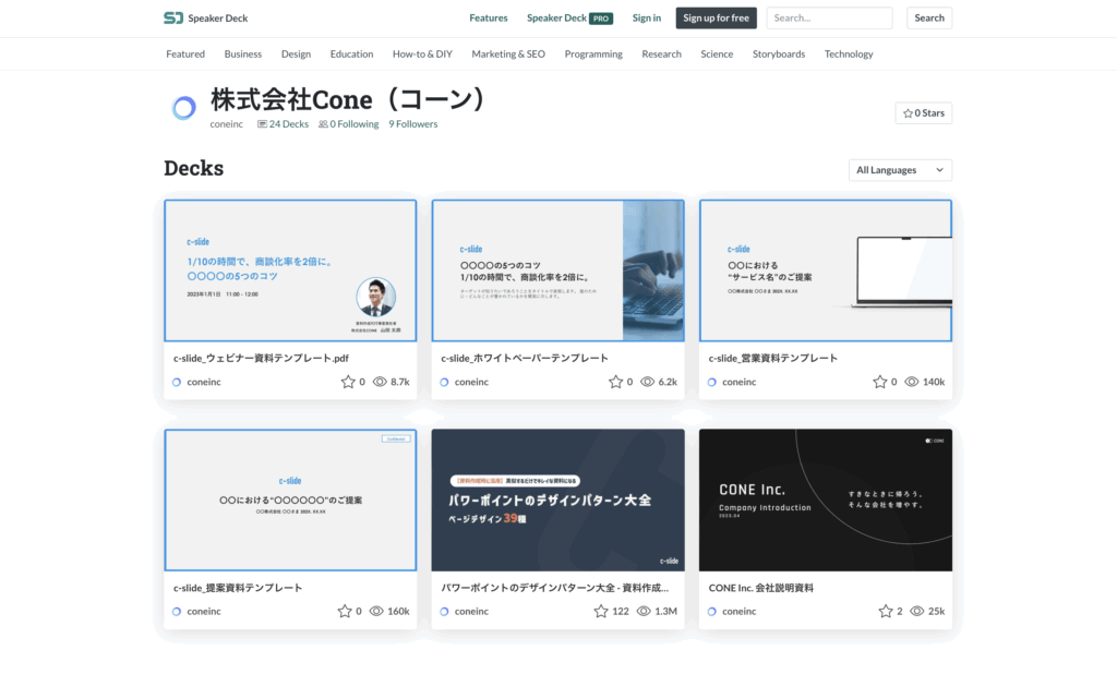弊社Coneは資料作成代行サービスc-slideを運営していて、自社資料も数多く制作しているので、公開する資料はいっぱいあります。その資料たちはこれまでSpeakerDeckに公開してきました。