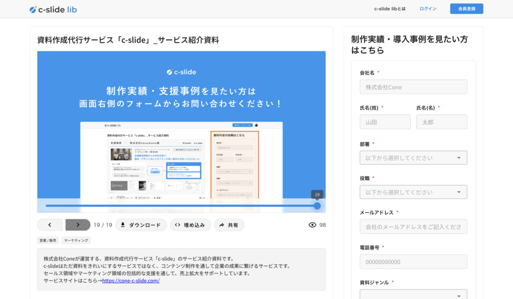 BtoB向けの無料のスライド共有サービス「c-slide lib」
