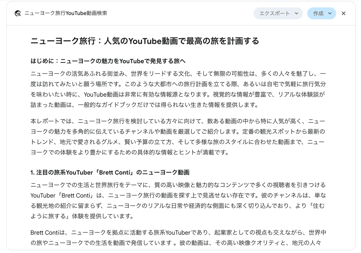 次にDeep Reearchを使って、おすすめのYouTube動画を把握します。