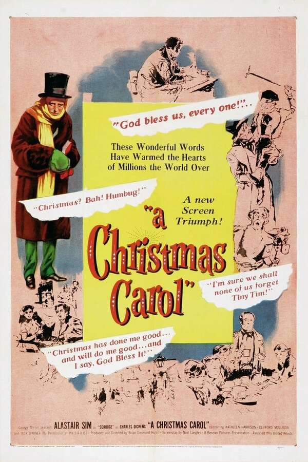 Annual rewatch. Certainly the best characterization of Ebenezer Scrooge in cinematic history, it is still far from my favorite version of A Christmas Carol. After watching all these varied versions over the years, over and over again, it's the casting that most moves and annoys me in Charles Dickens most beloved tale told onscreen. As I said, Alister Sim is the best Scrooge. And yet the second most important part in the story is one who always gets the least amount of thought. Time after time, Tiny Tim is anything but Tiny. In this version, as so many others, he's practically the same height as his father, Bob Cratchit. The poor underfed man compelled to carry his Not So Tiny son on his shoulder throughout the cobbled streets of Ye Old London. Both having to duck their heads upon entering their home on the poorer side of town. Yet no one seems to notice or care how incongruous this is to the overall narrative. Even though without Tiny Tim there is no reclamation for our grasping, scraping, clutching, covetous old sinner Scrooge. Bah! Humbug, says I. Funny enough, the only adaptation that gets Tiny Tim exactly right is the Muppets Christmas Carol. Played by Robin the Frog, Kermit's sweet voiced nephew. Tiny as a felt covered tadpole, is he. When he coughs and shudders and looks sickly you can't help but believe this little frog's not long for the world. The next best Tiny Tim was nine-year-old Richard Beaumont from the 1970 musical Scrooge. Richard was small for his age and looked perfectly at ease with his tiny crutch and limp. So when Bob Cratchit hoists the small child on his shoulder it doesn't look ridiculous and back breaking. Does that poor casting choice ruin this version? By my five stars you can tell it doesn't for me anyhow. The story and Alister Sim's iconc portrayal is more than enough to compensate for the casting director's incompetence. Besides, it's Tiny Tim's most famous line that carries this tale over the finish line anyway. "God bless us everyone!" Indeed, Not so Tiny Tim. Indeed.✌