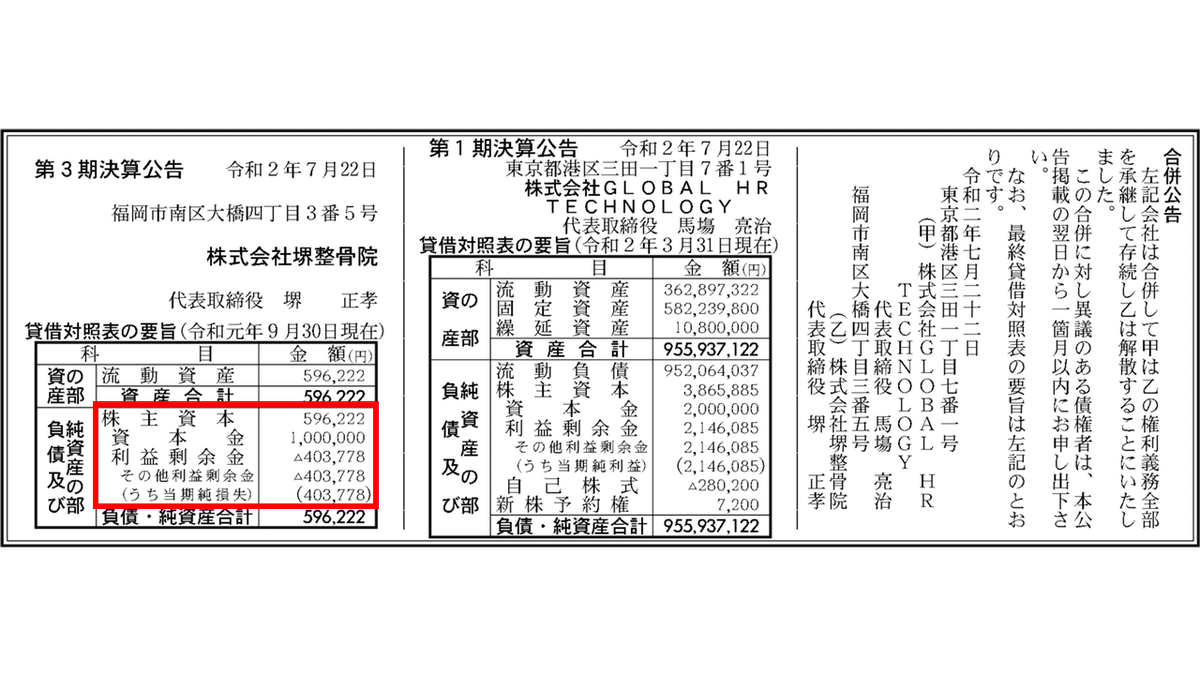 決算公告を見ると、資本金 100万円に対し、当期純損失は40万円となっており、堺整骨院社は、間もなく債務超過に陥ることが予想される状態であったと思われる。