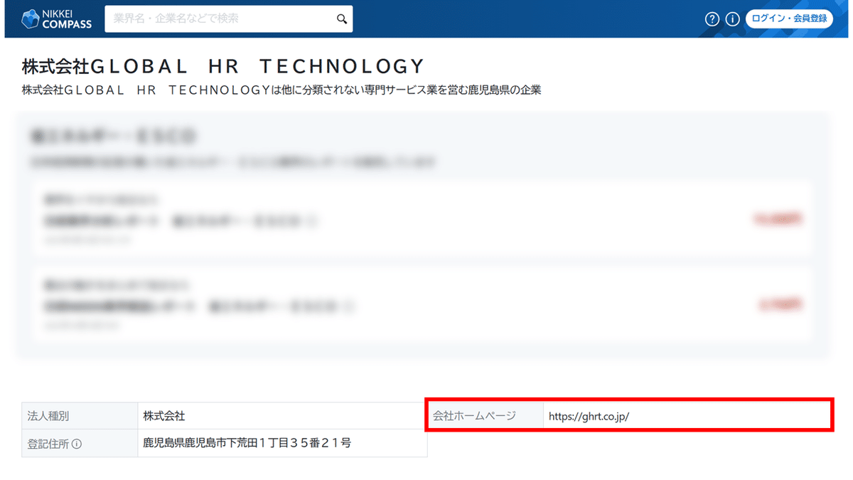 そこで、開いたのが、企業情報を掲載するサイトの一つである、NIKKEI COMPASSのページである。