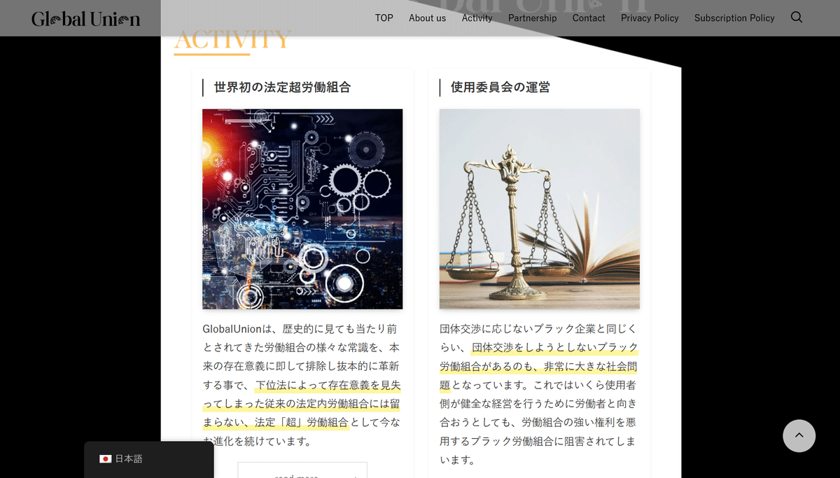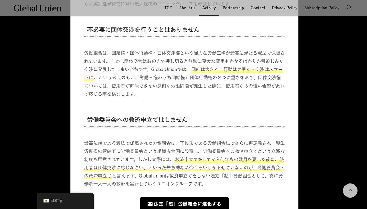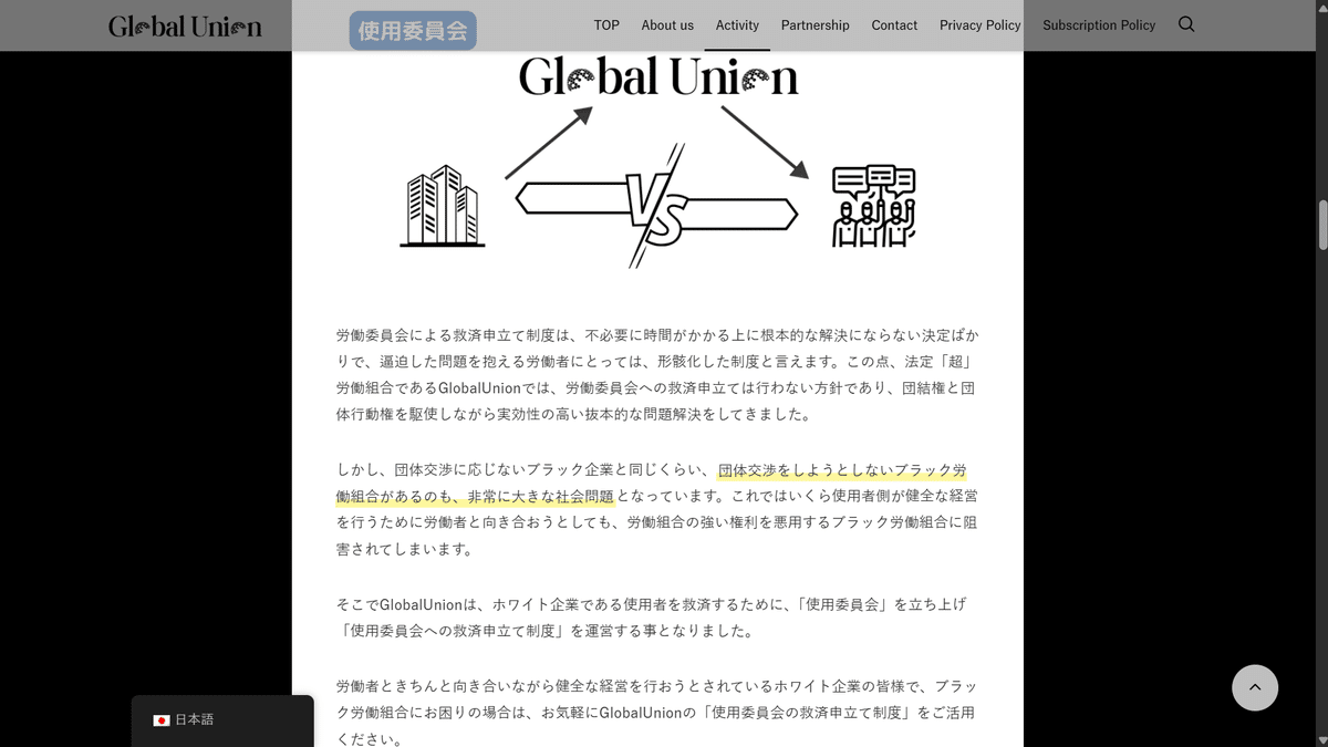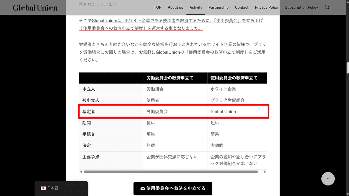 民間団体に過ぎないGlobal Unionが、企業と労働組合の間に立って裁定を行う、と謳っているのだ。