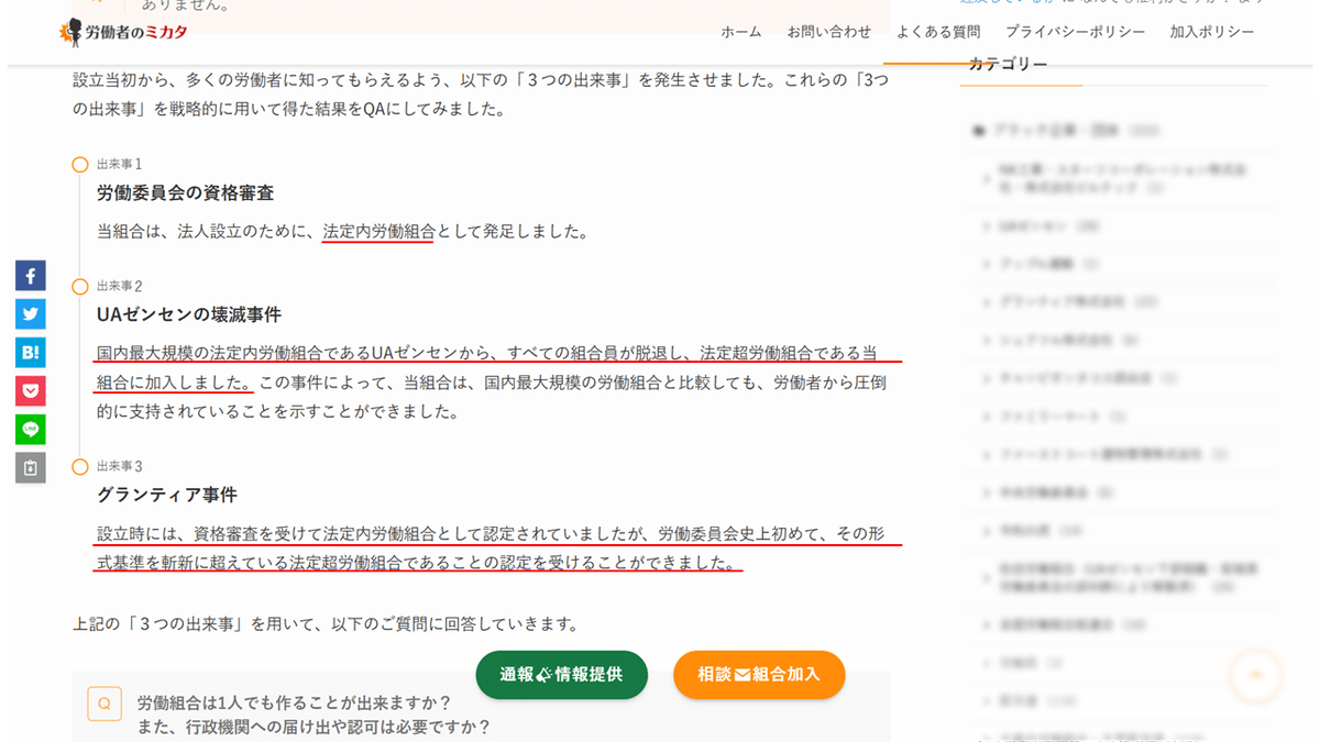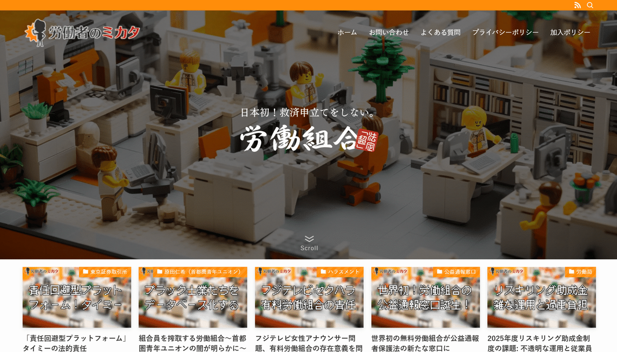 そして、その中でも、トップページで複数の記事のリンクが貼られていた、「労働者のミカタ」というページにアクセスしてみた。
