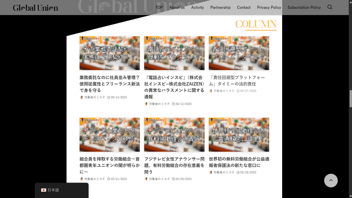 どうやら、「労働者のミカタ」というWebサイトは、合同労働組合(企業別でなく、横断的に組織される労働組合)を標榜する、「首都圏青年ユニオン連合会」(以下「ユニオン連合会」)が運営しているようだ。
