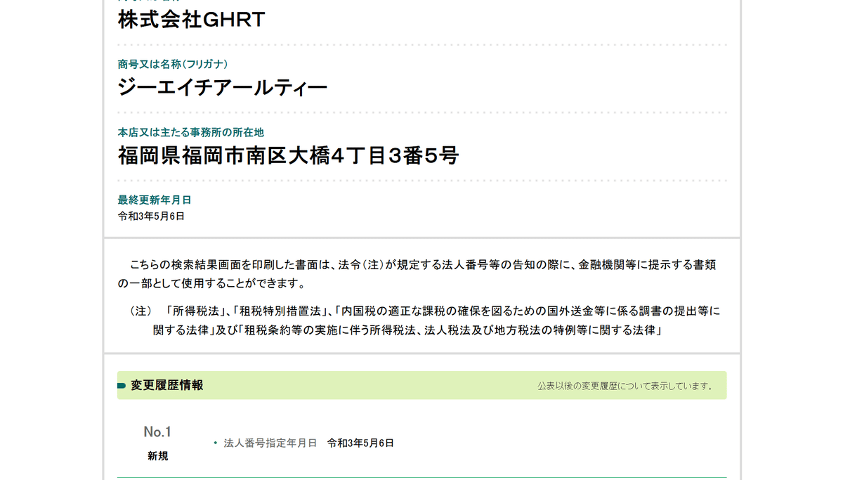 というわけで、謎の企業、「株式会社GHRT」(以下「GHRT社」)について、初心者ながら調査してみることとした。