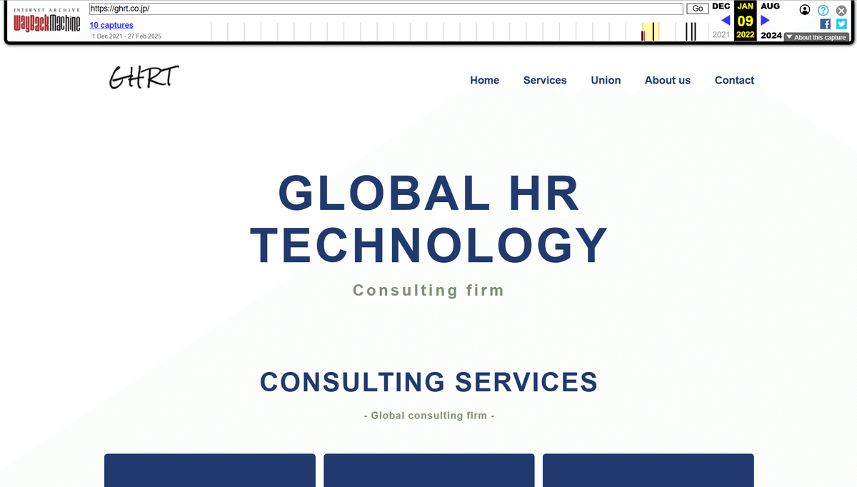 また、インターネット上のWebサイトのアーカイブを保存している「Wayback Machine」を用いて、「https://ghrt.co.jp」の過去の状態を確認してみよう。