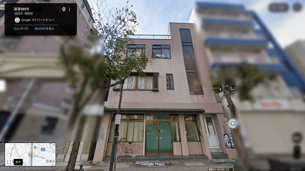 Googleマップで住所を入れると、法人基本情報の所在地には、年季の入った雑居ビルがあった。