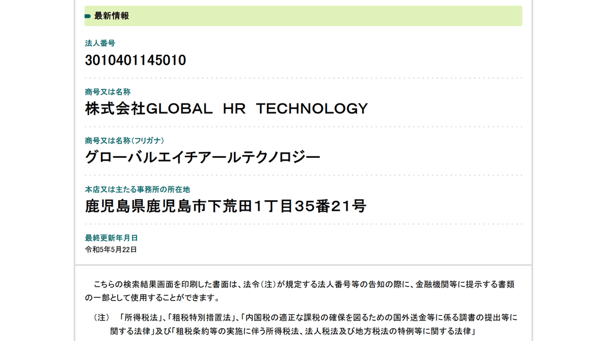 また、法人番号の指定日を含む変更履歴は、原則としてその変更の登記があった日から原則2営業日後に反映されるため、数日程度のタイムラグがあることだけご理解いただきたい。