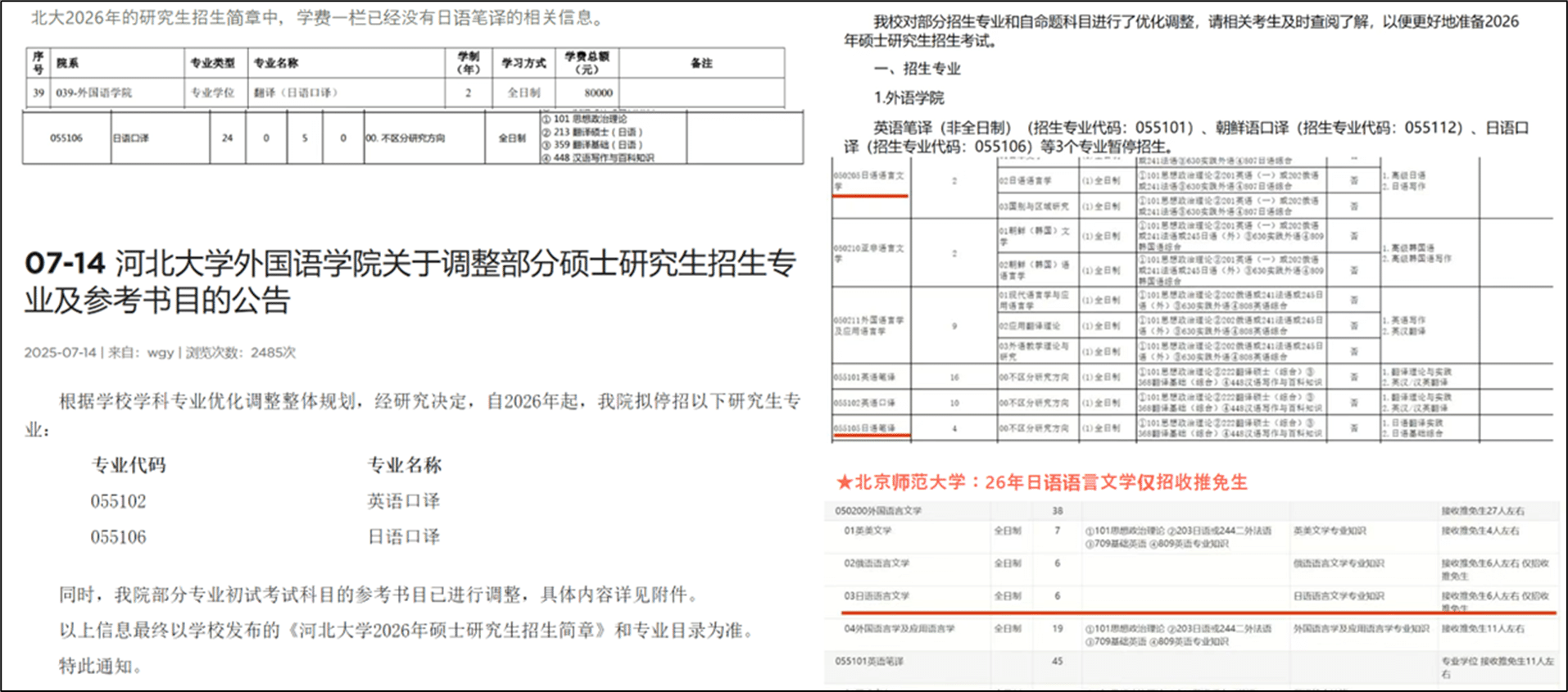 最近、中国の大学で「日本語学科が次々と縮小している」という話題が広がっています。2026年の大学院募集では、翻訳、日本文学を扱う学科の停止や縮小が相次ぎ、北京大学・青島大学など名門校も例外ではありません。