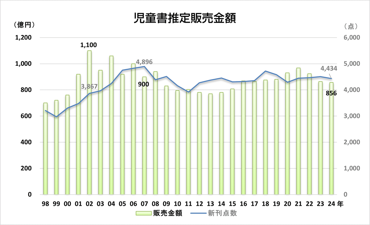 幸い、(なぜか)児童書は単独のデータがあり、1995年から現在まで、売上がほとんど減っていません。