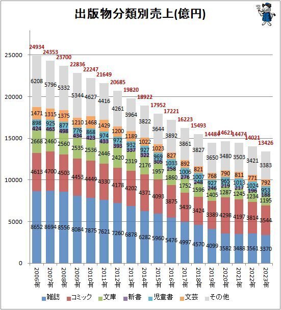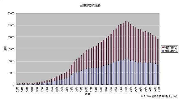 (書籍の減少が雑誌よりマシなのは、業界では20年前には知られていたと思います)