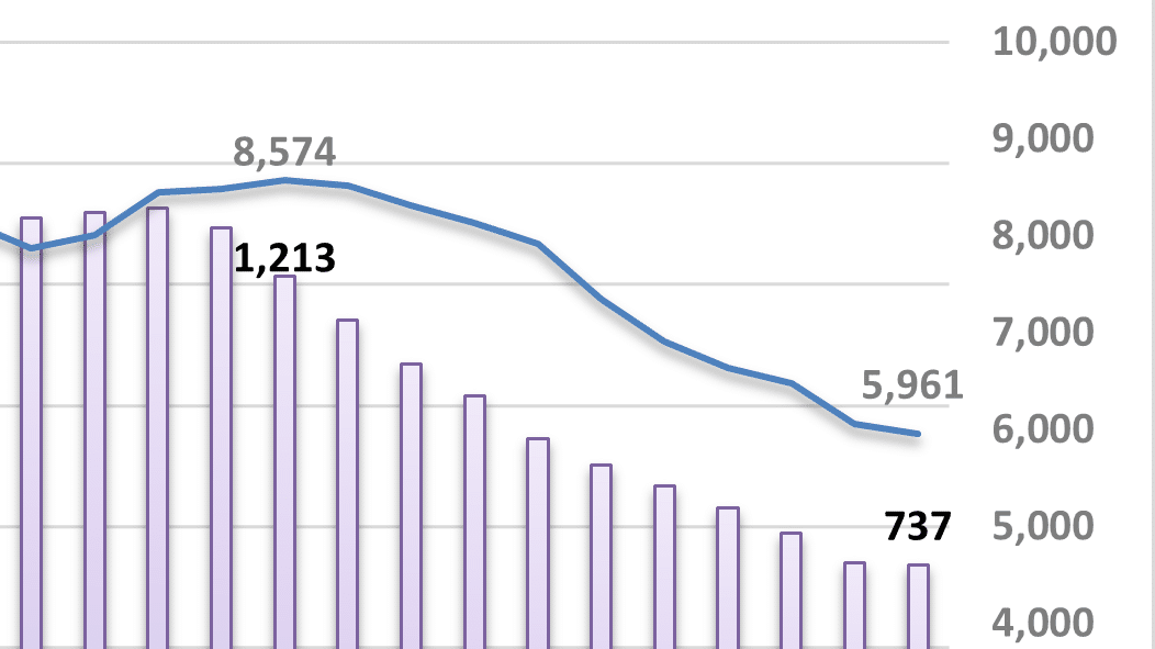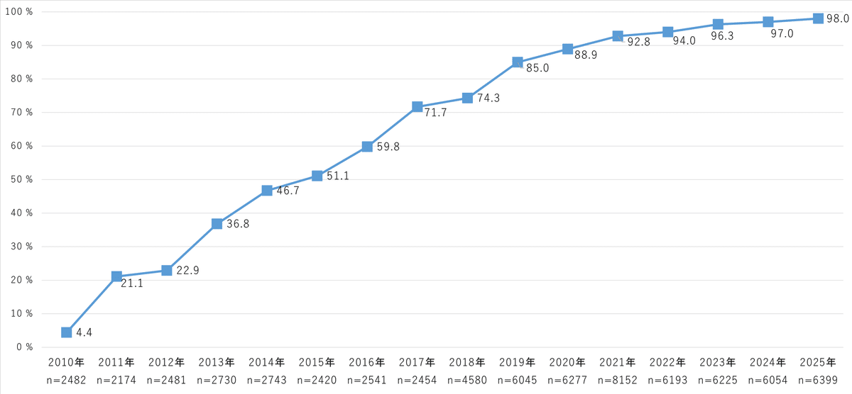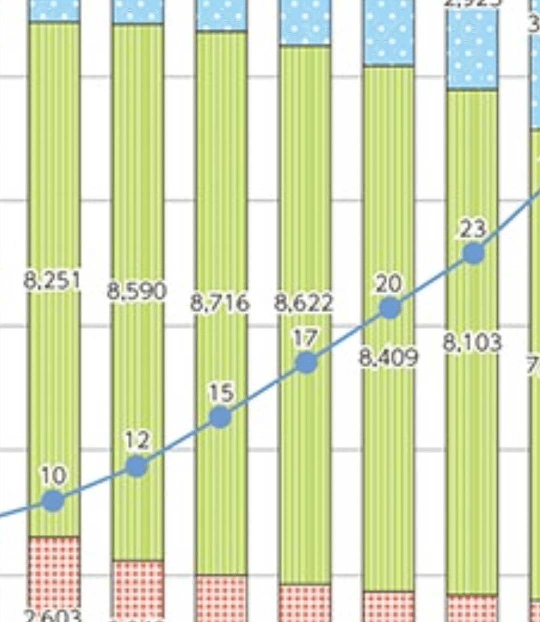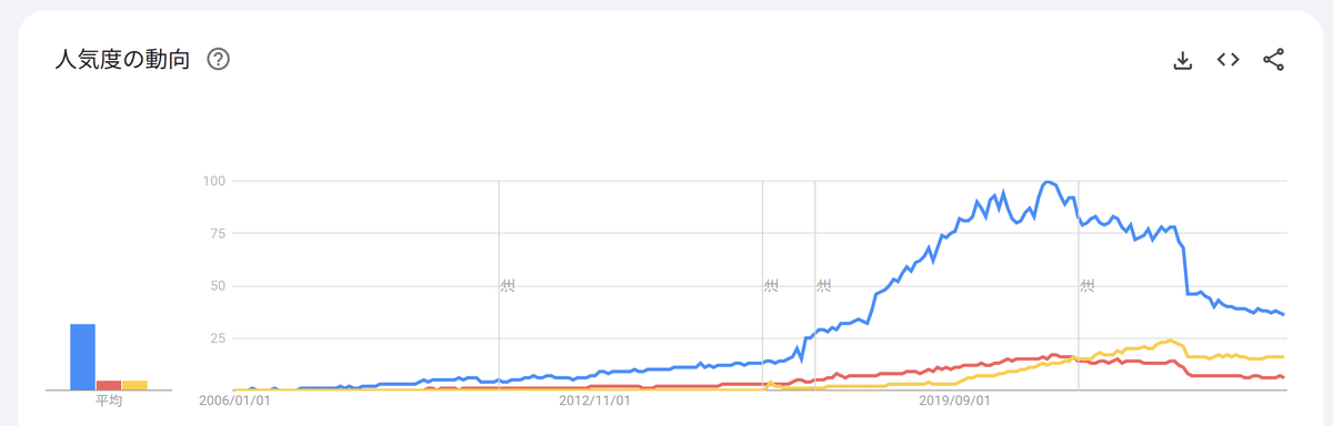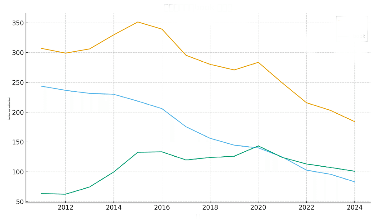 「2006年~2012年は急激に減って、それ以降も少しずつ減っている」という感じです。
