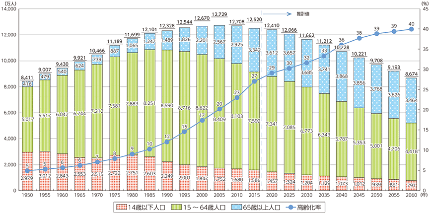 上の人口グラフには(運良く)生産年齢の人口も乗っています。