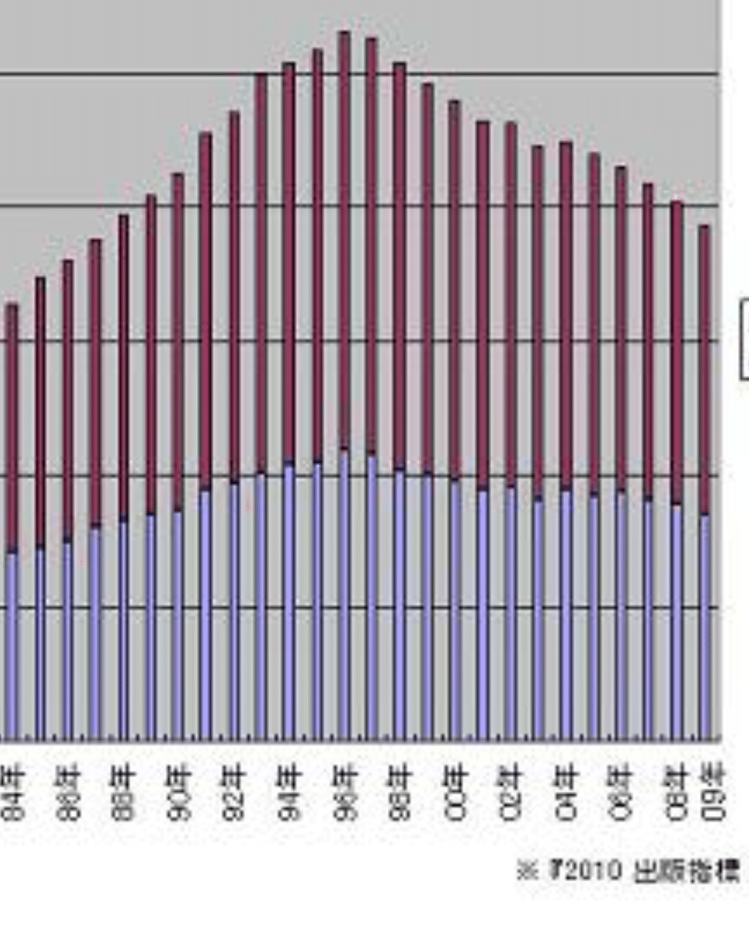 1995年以降、30年間で1兆円から6000億円に、40%減っています。