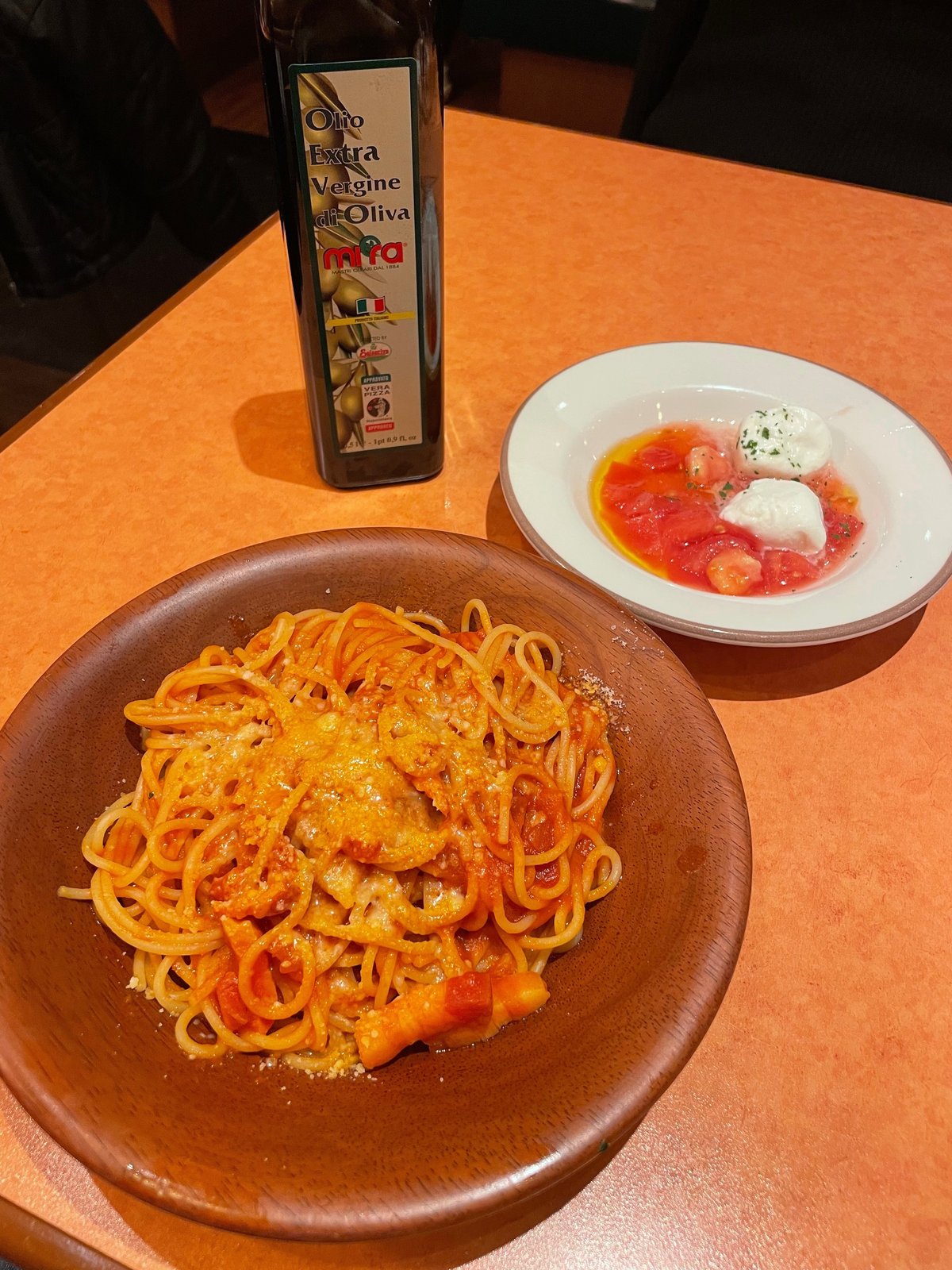 サイゼリヤで、母親がいつも作ってくれてたアラビアータが再現できる。スパゲッティのアラビアータにバッファローモッツァレラを切ってから乗せて、オリーブオイルを追加して混ぜるだけで、モッツァレラは少しとろっと溶けて最高のマンマの味になる。お好みで唐辛子フレークをかけてもいい。 pic.twitter.com/s52M9Y85tf