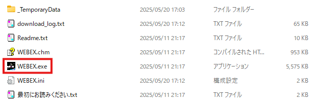 ダウンロードしたソフトを解凍、フォルダを開いたらアプリを起動します。