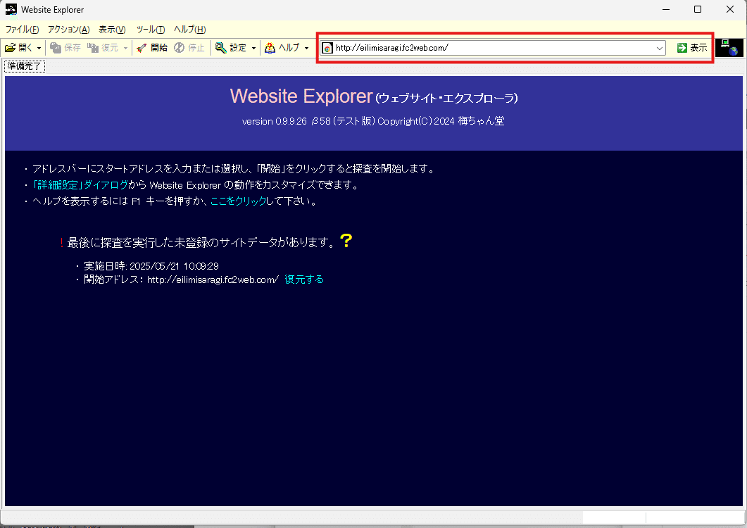 起動したら上のバーにDLしたいサイトのURLを入力し、表示