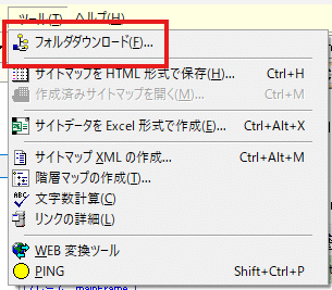 上部のメニューから[ツール]>[フォルダダウンロード]を選択