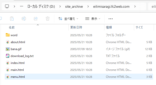 ということで、以下にサイトを個人的にアーカイブする方法をメモします。説明で使用するサイトは自分が昔作った厨二サイトです。