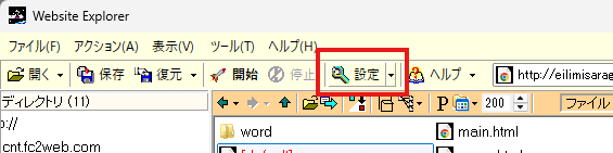 ヘッダーメニュー下にあるボタン行の[設定]を押下。