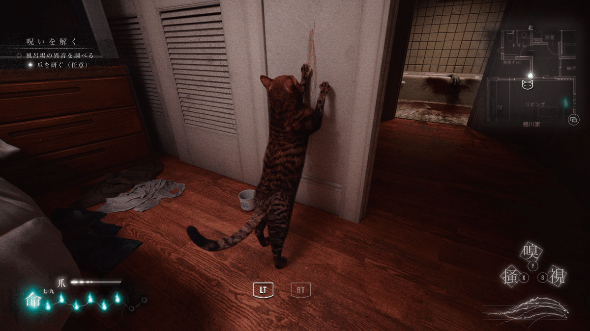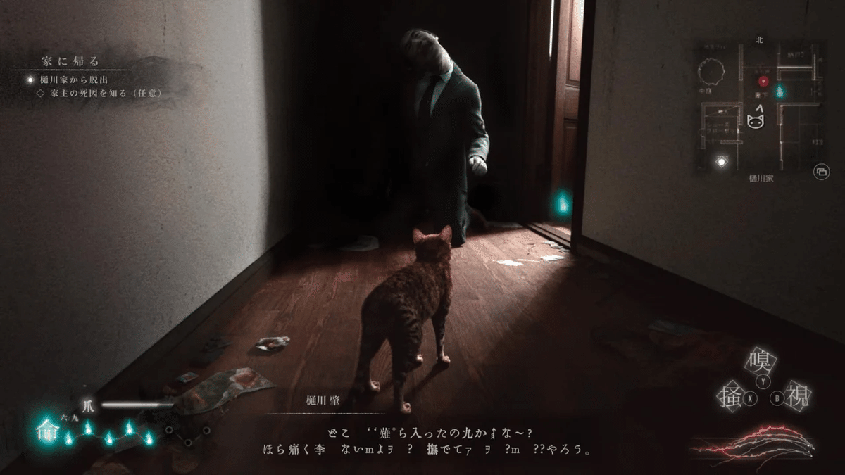 このゲームをプレイするあなたは、猫になる。猫になったあなたは、「嗅ぐ」「引っ掻く」「視る」と、3つのアクションを駆使して怪異に立ち向かうことができます。