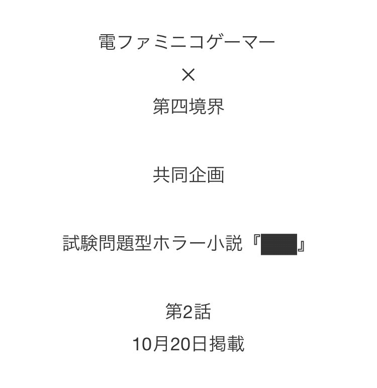 10月8日の記事により、本企画が電ファミニコゲーマーと第四境界の試験問題型ホラー小説企画であると判明しました。
