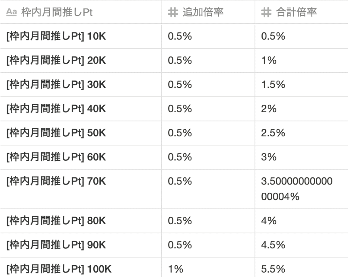 推しptの合計なのでボーナスの反映に大切な動きは