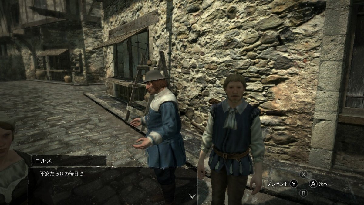 そんなある日、町の人にも「プレゼント」ができることに気が付いた。話しかけた後、プレゼントコマンドが出ているじゃないか。これで贈り物をしまくれば、彼らの不安は解消されるのではないか。俺は大喜びで持っているアイテムを渡しに行った。花やそこら辺で拾った誰かの頭蓋骨など、とにかく手当たり次第に渡してみる。喜んでもらえるだろう。なんでも渡した。