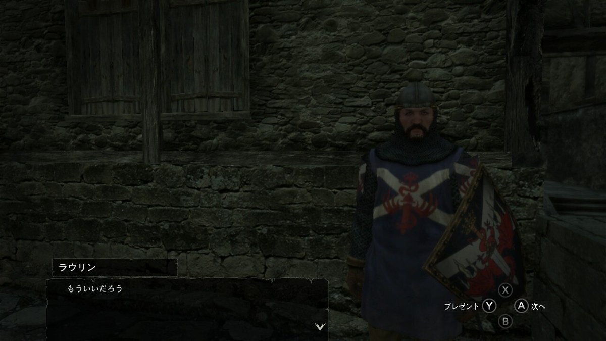 反応は冷たかった。それでも諦めずに渡そう……として、間違えて弱攻撃をしてしまう。プレゼントコマンドと、会話していないときの弱攻撃ボタンが同じだったことを忘れていたのだ。ああ、犯罪者になってしまった。