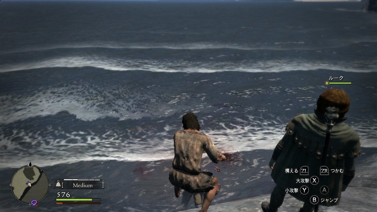 このゲームは、海に入っただけで死んでしまうのだ。それは俺もそうだし、NPCですら例外ではなかった。てっきり降ろしたあとに海岸へ立ち、猛抗議してくれるとばかり思っていた俺は、一瞬のうちに波へさらわれた厳しいご時世の血の跡を見て、深く後悔した。1人1人の不安を解消できると思うなんて傲慢だったのだ。俺がやるべきことは、ドラゴンの討伐だったのに。