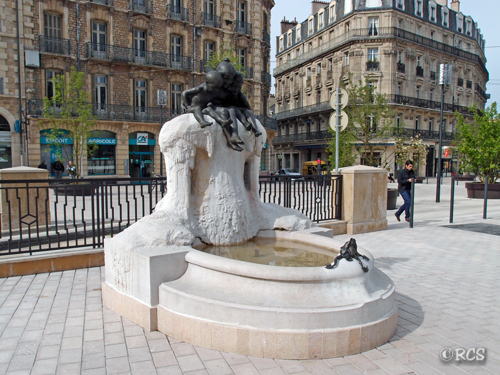 アール・ヌーヴォーの彫刻家Max Blondat(1872~1925年)の作品。この像はもともとここにあったのに、地下に駐車場をつくったときに取り外されていたそう。馴染みの泉がなくなったのを惜しむディジョンっ子たちの声で、またもとの場所に戻されたようです。