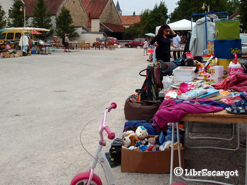 夏になったら、ヴィッド・グルニエ(Vide grenier)があちこちで開かれます。物置として使っていることが多いのがグルニエ(屋根裏部屋)。それを空にする、というような意味で、住民の人たちがいらないものを売るというイベントです。