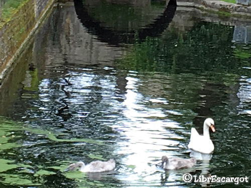 母親と子どもたちが餌を探している様子。『みにくいアヒルの子』のお話しがありますが、白鳥が子どもの時には本当に灰色なんだと眺めました。