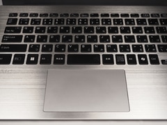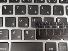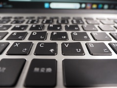 キーボードはテンキーなしの87キー日本語仕様。キーピッチが約19mmと標準的で、キートップ(中央部)がわずかにへこんだ形状のため指が吸い付くようにフィットする上、キーストロークが約1.5mmと十分なので、非常に快適に入力が行なえる。ディスプレイを開くと本体奥側が持ち上がり、キーボードに適度な傾斜が付く点も入力の快適性を高めている。