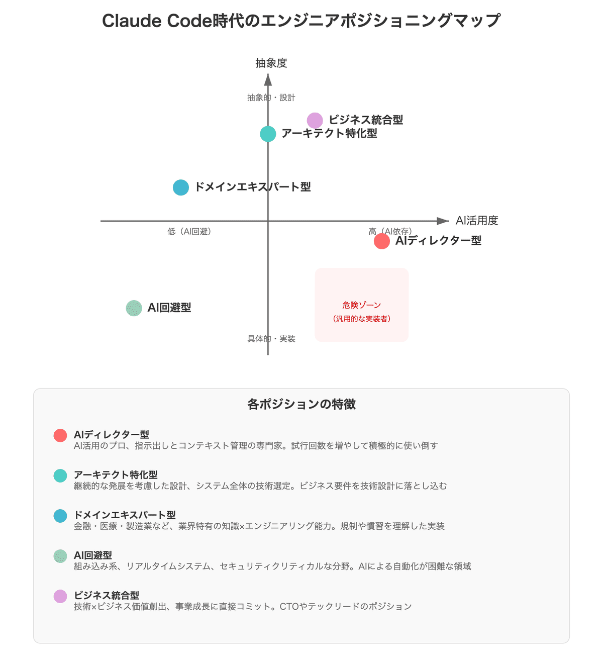 変化を恐れていては生き残れないと思っていて、Claude Code時代(AI時代)において重要なのは、AIを敵視することでも、AIに依存することでもない。AIという強力なツールを理解し、自分のポジショニングを明確にし、人間にしかできない価値創造に集中することだと思っています。