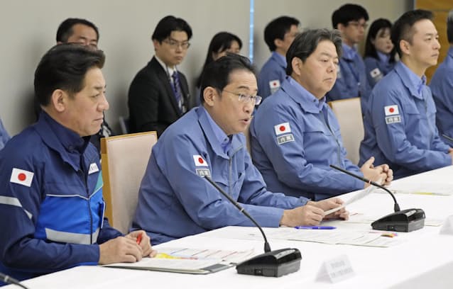 首相は石川県の馳浩知事ら地元自治体の首長とテレビ会議で意見交換した。水や食料、燃料、仮設トイレ、病院の資機材などの要望を聞いた。