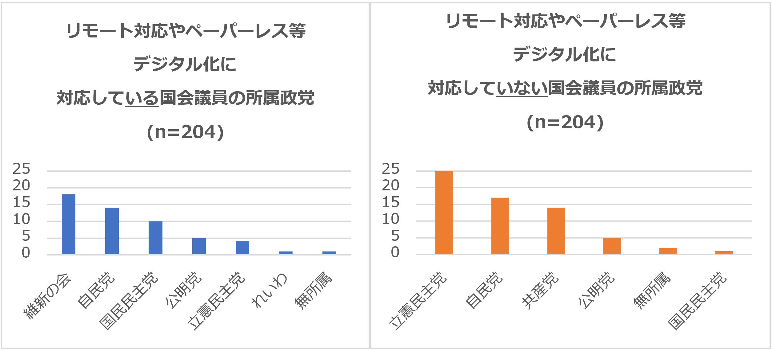【リモート対応やペーパーレス等デジタル化に積極的に対応している国会議員の所属政党】