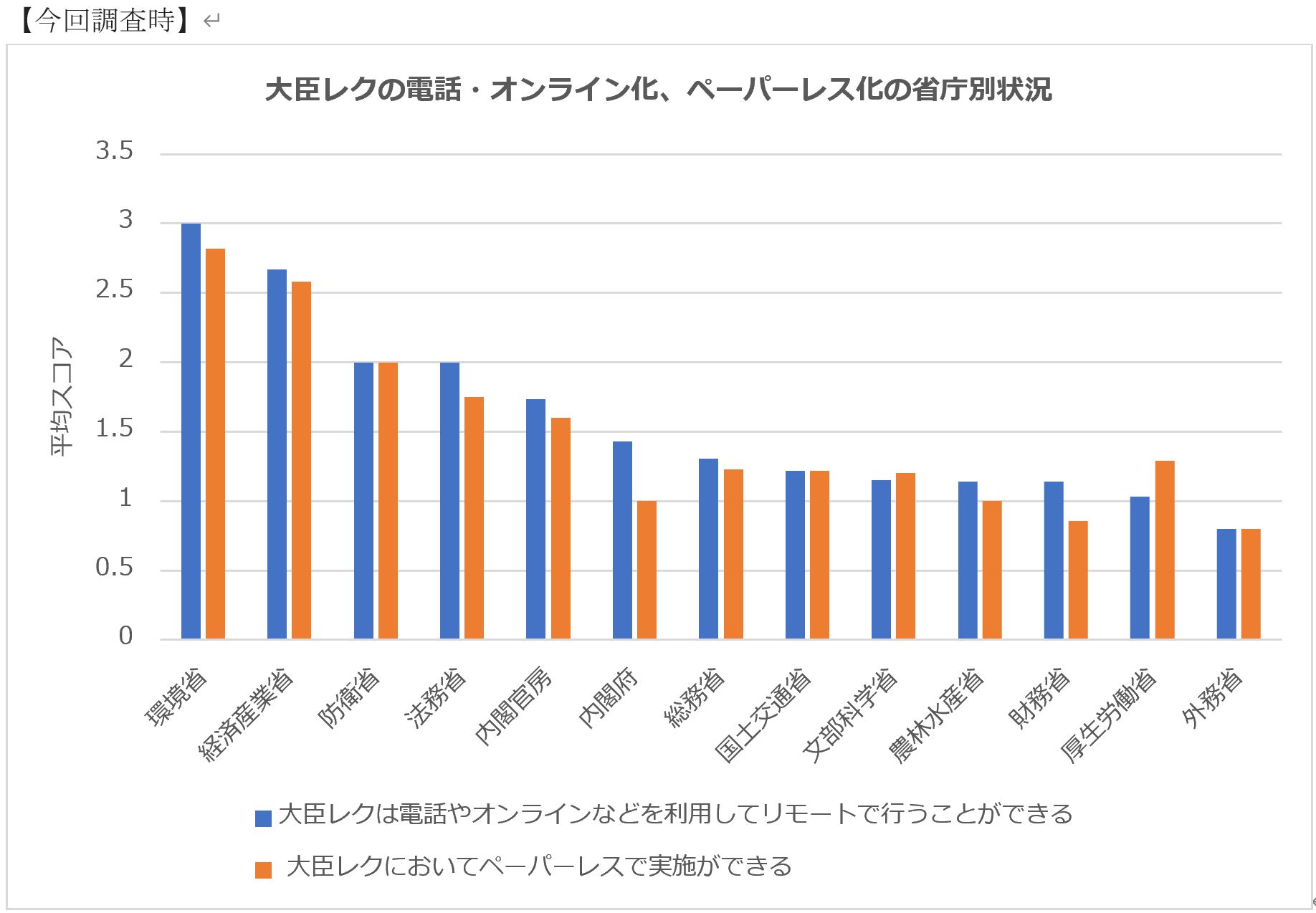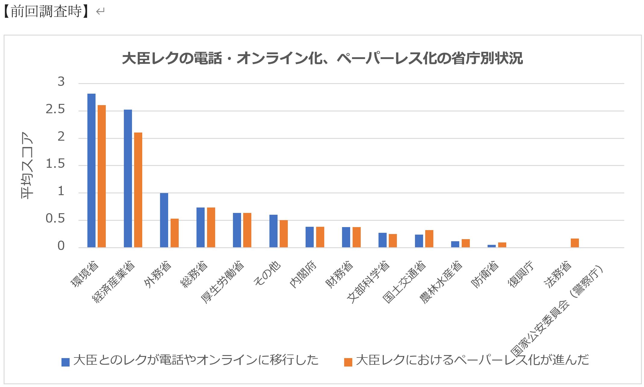 「大臣レクのデジタル化」は1位:環境省。前回に比べ防衛省・法務省が大きく躍進