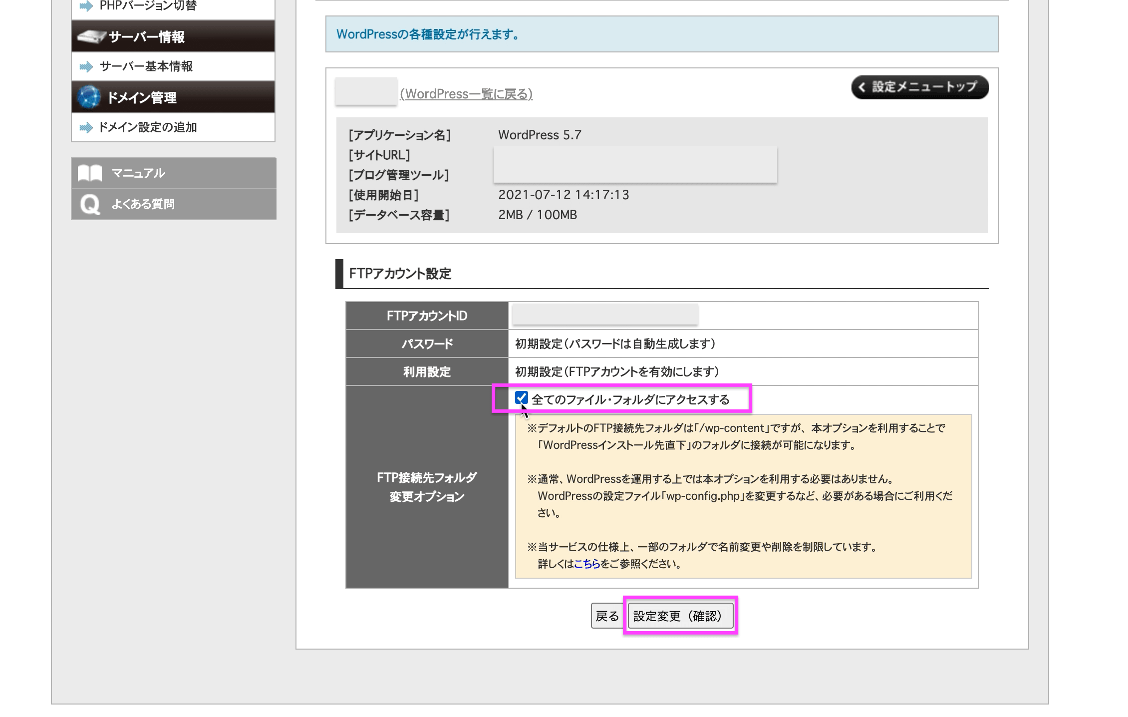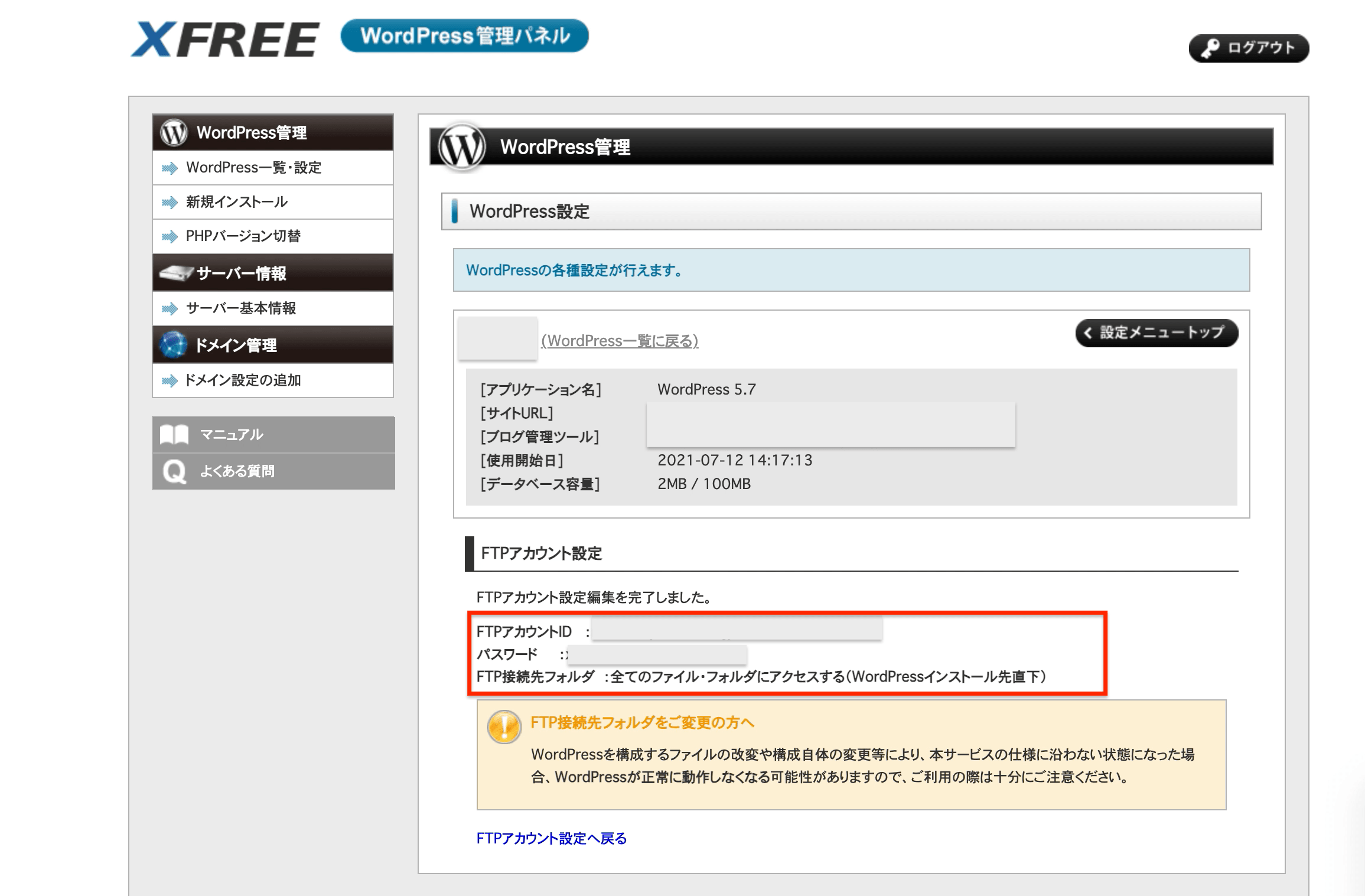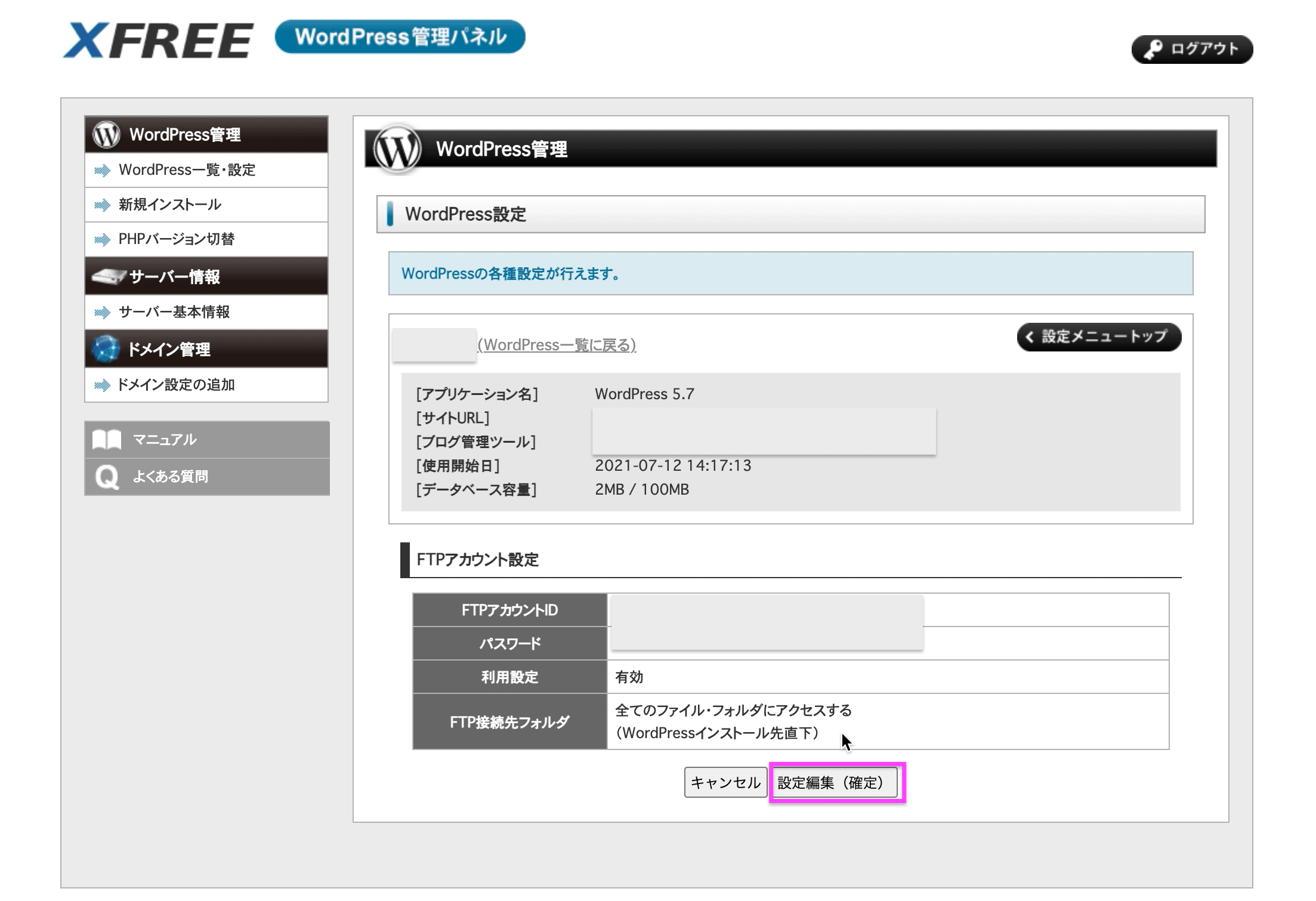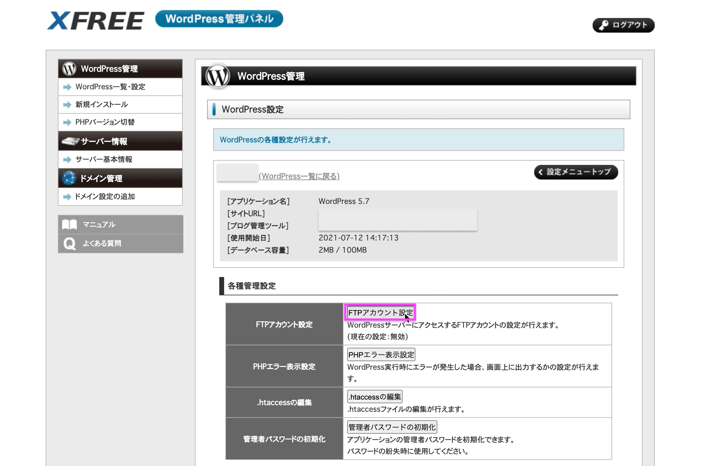 XFREEのWordPressサーバーにアクセスするためのFTPアカウントを設定する方法