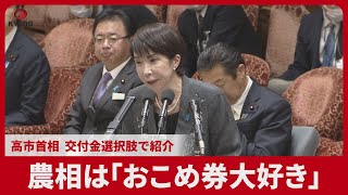 農相は「おこめ券大好き」 高市首相、交付金選択肢で紹介 衆院予算委